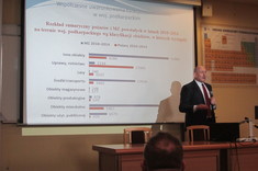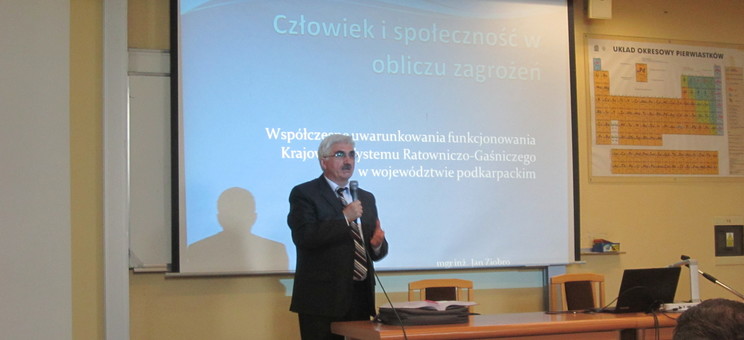 Drugi z prelegentów – st. bryg. w stan. spocz. mgr inż. poż. Jan Ziobro omówił temat dotyczący współczesnych uwarunkowań funkcjonowania KRSG w Województwie Podkarpackim, podczas którego w szczególny sposób zwrócona została uwaga na ewolucję środowiska bezpieczeństwa – postępującego głównie wskutek rozwoju techniki. Dokonano także charakterystyki rozmieszczenia jednostek, które jest istotne z punktu widzenia ratowania zdrowia i życia potencjalnych poszkodowanych.