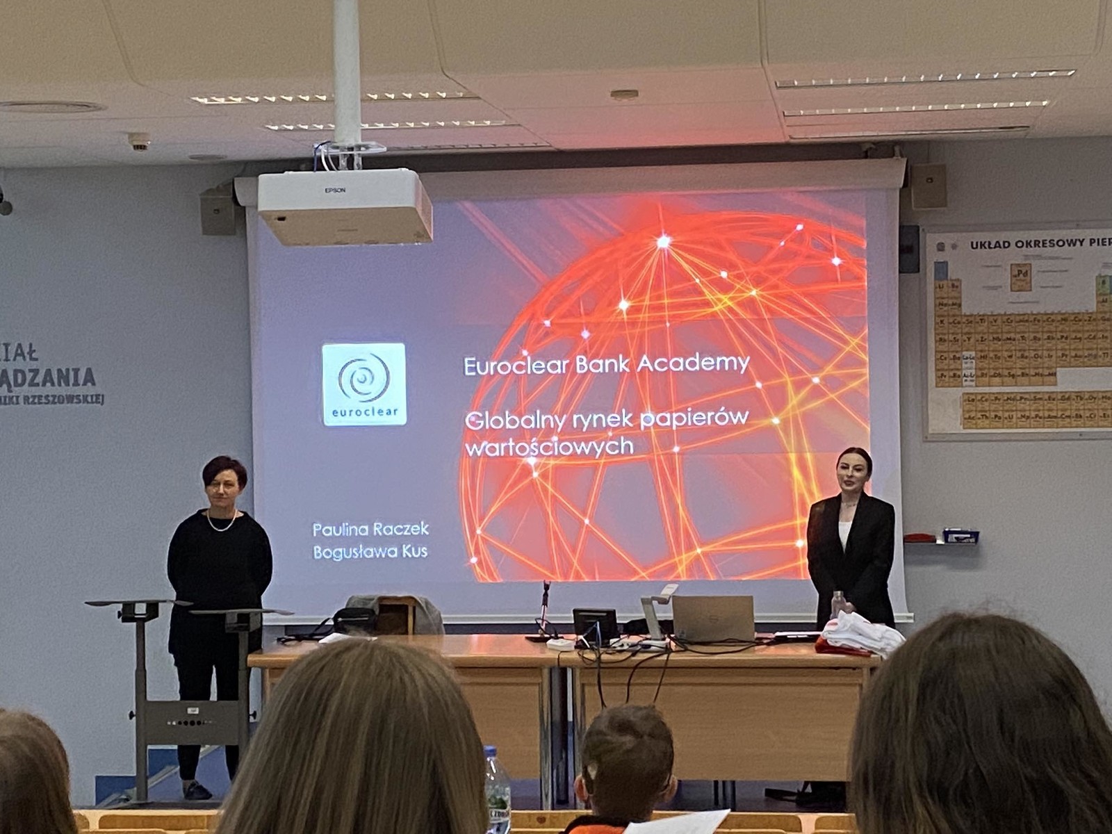 W dniu 22 kwietnia 2024 r., Koło Naukowe Rachunkowości ASSETS miało przyjemność zorganizować wykład otwarty na temat "Globalny rynek papierów wartościowych". Wykład prowadzony był przez specjalistki z Euroclear: Panią Bogusławę Kus, Senior Director – Head of TP and Settlement Discipline CS, oraz Panią Paulinę Raczek, Service Manager - Tax Client Service & Investigations.