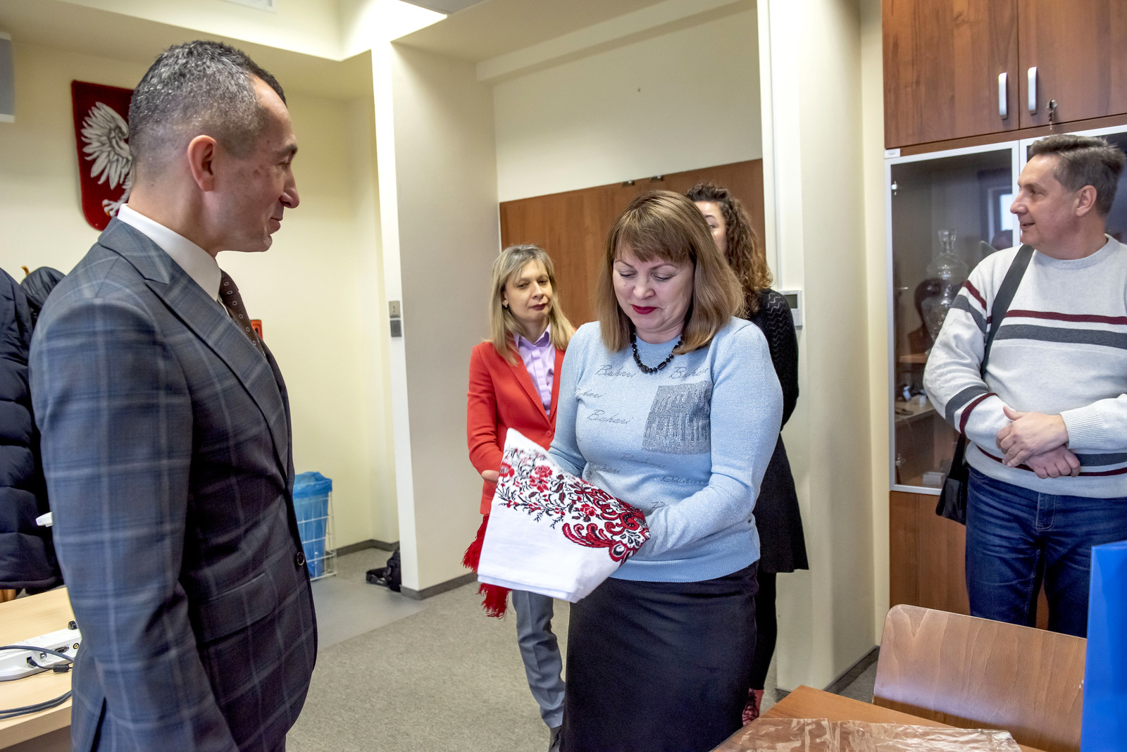 W imieniu władz uczelni, gości przywitał prorektor ds. studenckich, prof. dr hab. Grzegorz Ostasz, kierownik Katedry Nauk Humanistycznych i Społecznych, który przedstawił atuty uczelni, jej cele i wartości, doświadczenia i przykłady dobrych praktyk współpracy międzynarodowej. Prorektor Ostasz wręczył gościom upominki Politechniki Rzeszowskiej, a dr Larysa Lysak przekazała w ręce Prorektora tradycyjnie wyszywany ukraiński rusznyk oraz monografię uczelni.
