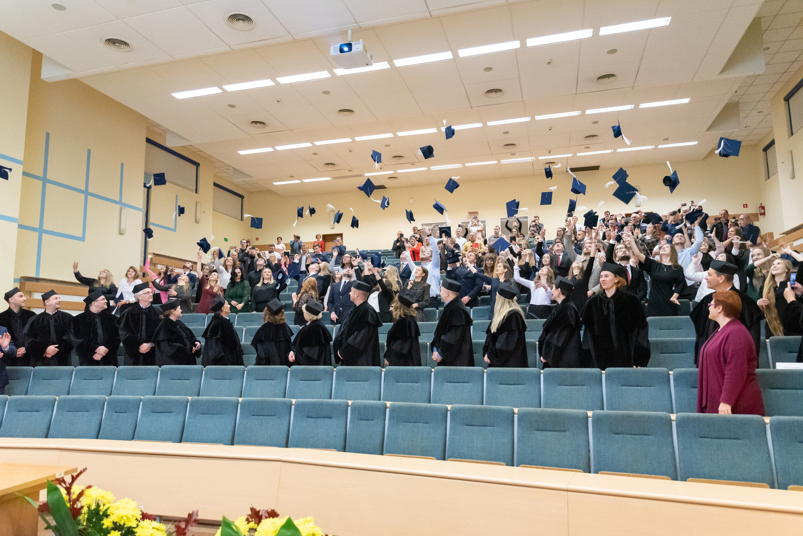 Tradycyjnie oczekiwanymi momentami podczas wydarzenia były: przełożenie białych frędzli z prawej na lewą stronę biretów, jako symbol zmiany statusu ze studenta na absolwenta, wyrzucenie biretów w górę na znak radości z ukończenia kolejnego ważnego etapu w życiu i oczywiście pamiątkowe zdjęcia.