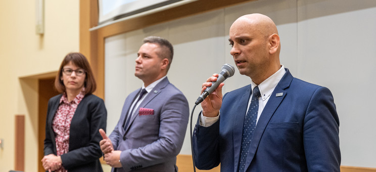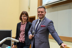 Przed wystąpieniami prof. dra hab. inż. Grzegorza Budzika i dr Moniki Zub dziekan Wydziału Zarządzania dr hab. Marcin Jurgilewicz, prof. PRz, witając wszystkich, podkreślił olbrzymie znaczenie ewaluacji naukowej dla Wydziału i poszczególnych pracowników w kontekście przepisów obowiązującej ustawy.
