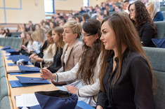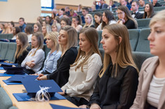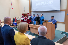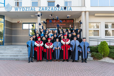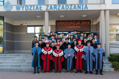 Niedziela – 27 października 2019 r. Dochodziła godz. 9.00, gdy przed salą S1 zaczęli gromadzić się pierwsi absolwenci Wydziału Zarządzania, którzy wraz ze swymi bliskimi, rodzicami, znajomymi, sąsiadami, znajomymi sąsiadów itp. wybrali się na uroczystość wręczania dyplomów ukończenia studiów. W tym roku to szczególne wydarzenie (zwane potocznie graduacją) odbyło się już po raz DZIESIĄTY!!!