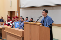 Dr hab. inż. Marian Woźniak, prof. PRz, który przemówił w imieniu promotorów i wykładowców silnie akcentował fakt tego, jak duże znaczenie w życiu człowieka ma wiedza. Przywołał m.in. słowa piosenki Marka Grechuty, który śpiewał: „Wiedza to jest dar zdobyty przez lata ogromnej, żmudnej pracy. Mądrość to umiejętność korzystania z wiedzy tak, jak dyktuje nam serce. Wiedza to środek, mądrość i cel”.