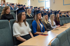 Dalszą część graduacji poprowadził prodziekan Wydziału Zarządzania ds. rozwoju i kontaktów z gospodarką dr Mariusz Ruszel, który m.in. odebrał od absolwentów ślubowanie potwierdzające, że będą oni zawsze strzec dobrego imienia Politechniki i że będą wykorzystywać zdobytą wiedzę w swym codziennym życiu. Ponadto prodziekan przypomniał, że bycie absolwentem Politechniki Rzeszowskiej im. Ignacego Łukasiewicza również zobowiązuje. Nawiązując do patrona życzył absolwentom odwagi w myśleniu i konsekwencji w działaniu na miarę Ignacego Łukasiewicza.