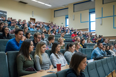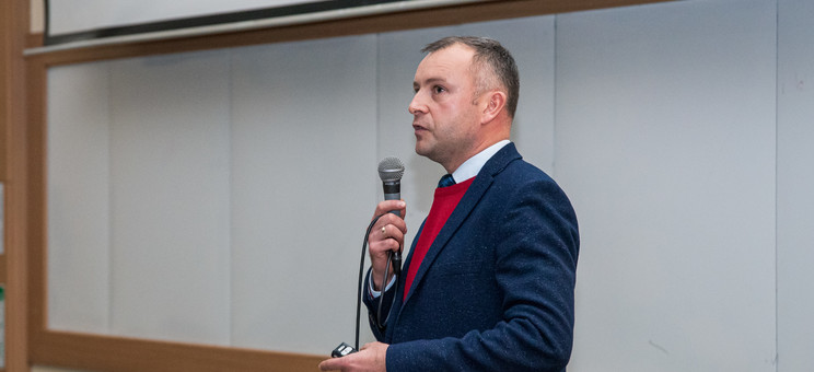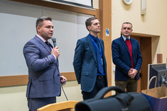 Dziekan WZ, dr hab. Marcin Jurgilewicz, prof. PRz, powitał komandora por. dra Miętkiewicza na Wydziale i zachęcał słuchaczy do zadawania pytań i dzielenia się uwagami, a dr Mariusz Ruszel – prodziekan WZ ds. rozwoju i kontaktów z gospodarką podziękował członkom działającego na WZ przy Katedrze Ekonomii Studenckie Koła Naukowego „Eurointegracja” i członkom Samorządu Studenckiego za zorganizowanie spotkania.