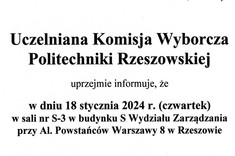 W załączeniu ogłoszenie wyborcze Uczelnianej Komisji Wyborczej Politechniki Rzeszowskiej.