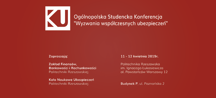W dniach 11-12 kwietnia 2019 roku Koło Naukowe Ubezpieczeń Politechniki Rzeszowskiej oraz Zakład Finansów, Bankowości i Rachunkowości organizują Ogólnopolską Studencką Konferencję Naukową nt.: „Wyzwania współczesnych ubezpieczeń”. Początek debaty o godz. 9.00 w sali P24.