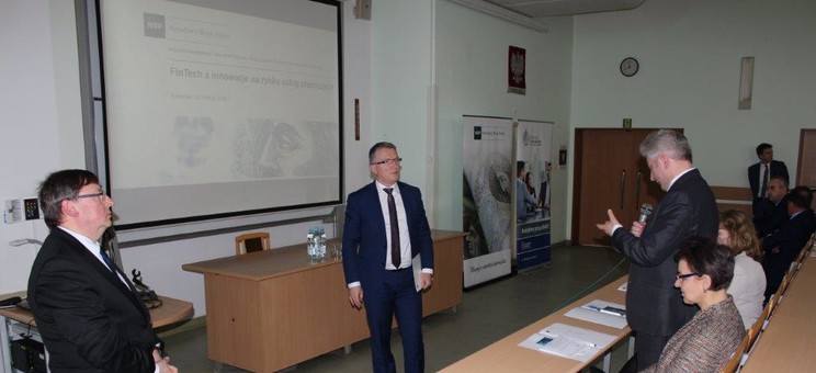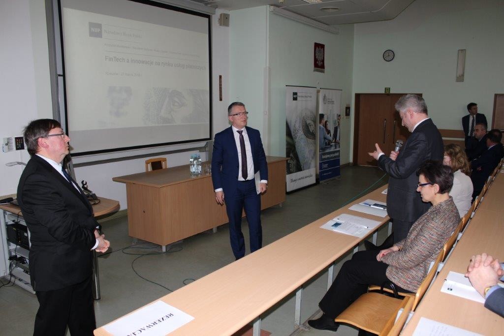- „FinTech a innowacje na rynku usług płatniczych” – zagadnienie omówił naczelnik Wydziału Analiz i Badań w Departamencie Systemu Płatniczego NBP – dr Krzysztof Maciejewski.