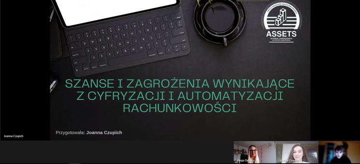 Joanna Czupich, studentka pierwszego roku kierunku finanse i rachunkowość, przedstawiła referat pt. "Szanse i zagrożenia wynikające z cyfryzacji i automatyzacji rachunkowości", a Kinga Dębska i Adrian Kocur, również studenci pierwszego roku na kierunku finanse i rachunkowość przygotowali referat pt. "Przyszłość́ rachunkowości a postępująca globalizacja", za który zdobyli III miejsce w konkursie na najlepszy referat.
