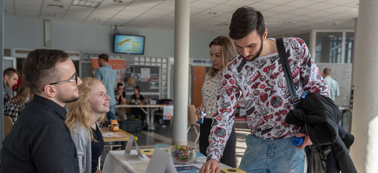 Środa, 20 marca 2019 r., na Wydziale Zarządzania zaczęła się dosyć niewinnie, aczkolwiek wiadomo było, że skoro rozpoczynają się DNI WYDZIAŁU ZARZĄDZANIA, to dzień ten (podobnie, jak i czwartek 21 marca) będzie nietypowy. Oprócz tego, że w budynku S rozstawione zostały stoiska uczelnianych kół naukowych, to można było w ramach specjalnych wykładów dowiedzieć się o szansach pracy w służbach mundurowych, o tym jak dobrze wypaść podczas rozmowy rekrutacyjnej o pracę czy o tym, jak Internet może pomóc w rozwoju firmy, nawet tej największej.