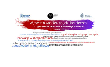 14 grudnia 2020 r., z inicjatywy członków i opiekunów Koła Naukowego Ubezpieczeń działającego na WZ, odbyła się III Ogólnopolska Studencka Konferencja Naukowa „Wyzwania współczesnych ubezpieczeń”.