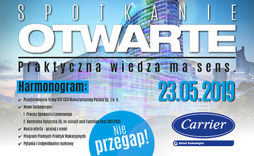W dniu 23 maja 2019 r. firma UTC CCS Manufacturing Polska Sp.zo.o. zaprasza wszystkich studentów na spotkanie otwarte, które rozpocznie się o godz. 14.00 w budynku V, sala V6.