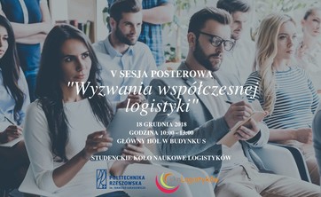 SKN Logistyków wraz z Katedrą Systemów Zarządzania i Logistyki zapraszają w dniu 18 grudnia 2018 r, w godz. 10-13 do holu budynku S r. na V Sesję posterową „Wyzwania współczesnej logistyki”.
