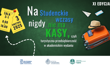 Studenckie Koło Naukowo-Badawcze Turystyki „Tuptuś”, zaprasza na kolejną edycję wydarzenia „Na studenckie wczasy nigdy nie ma kasy, czyli turystyczna przedsiębiorczość w akademickim wydaniu”.