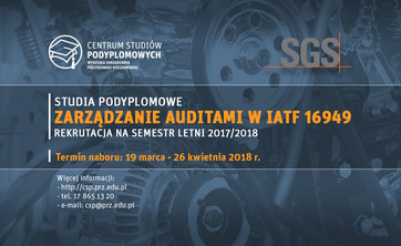 Rusza rekrutacja na studia podyplomowe Zarządzanie auditami w IATF 16949. Zajęcia od semestru letniego 2017/2018.