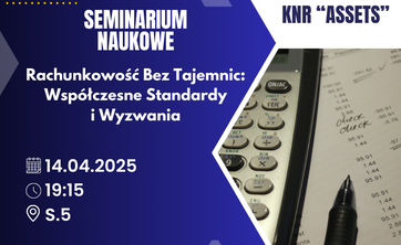 SKNR ASSETS zaprasza na Studenckie Seminarium Naukowe pt. „Rachunkowość bez tajemnic: współczesne standardy i wyzwania”, które odbędzie się 14 kwietnia 2025 r. (poniedziałek) o godz. 19:15 w sali S-5.