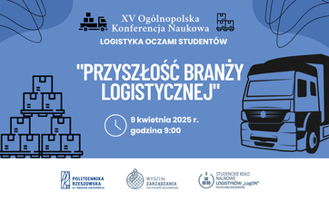 SKNL "LogON" zaprasza do udziału w XV edycji Ogólnopolskiej Konferencji Naukowej z cyklu „Logistyka oczami studentów”, która odbędzie się 9 kwietnia 2025 roku o godzinie 9:00.