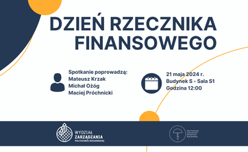 Wydział Zarządzania, Katedra Finansów, Bankowości i Rachunkowości oraz Koło Naukowe Ubezpieczeń serdecznie zapraszają na Dzień Rzecznika Finansowego na Politechnice Rzeszowskiej.