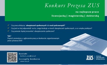 Konkurs Prezesa ZUS na najlepsze prace: licencjacką, magisterską oraz...
