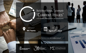 W czwartek, 27 kwietnia 2023 r. odbędzie się III edycja międzynarodowej konferencji „International Seminar‘ Current Issues’ in Economics, Management and Engineering”.