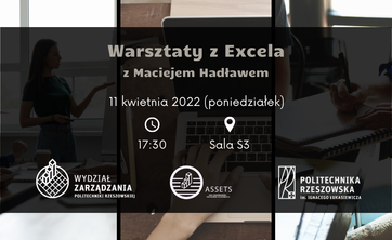 Wszystkich zainteresowanych wykorzystaniem arkuszy kalkulacyjnych w biznesie zapraszamy na warsztaty otwarte z Excelem, które odbędą się 11 kwietnia 2022 r. w budynku "S" Wydziału Zarządzania PRz.