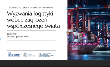 28 stycznia 2022 r. odbędzie się druga edycja Ogólnopolskiego Seminarium Naukowego dotyczącego szeroko pojętej logistyki. Organizatorem wydarzenia jest Studenckie Koło Naukowe Logistyków „LogON”.