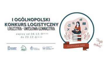 06.12.2021 r. zostanie uruchomiona możliwość zarejestrowania swojego udziału w I Ogólnopolskim Konkursie Logistycznym “Logistyka - umysłowa gimnastyka”. Decyduje kolejność zgłoszeń.