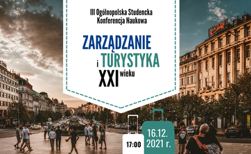 16.12.2021 r. odbędzie się III Ogólnopolska Studencka Konferencja Naukowa "Zarządzanie i Turystyka XXI wieku". Organizator - SKNBT Tuptuś - zaprasza studentów uczelni wyższych z całej Polski.