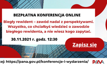 30.11.2021 r. o godz. 12.30 PANA organizuje dla studentów konferencję online "Biegły rewident – zawód nadal z perspektywami". O tematyce i formie zgłaszania udziału piszemy w treści aktualności.
