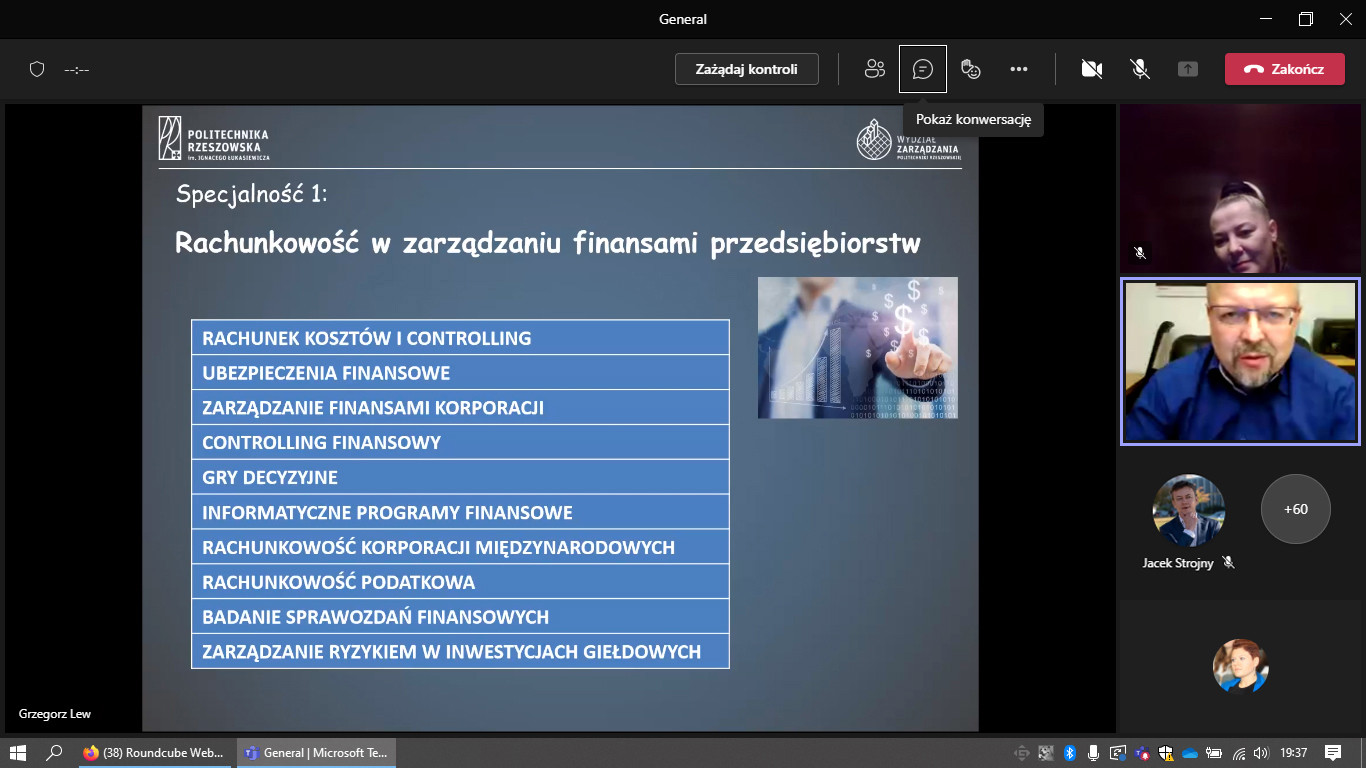 - Zarządzanie finansami – dr hab. inż. Grzegorz Lew, prof. PRz
