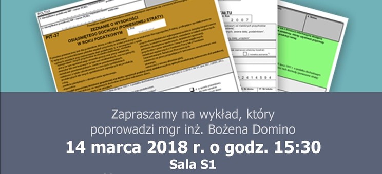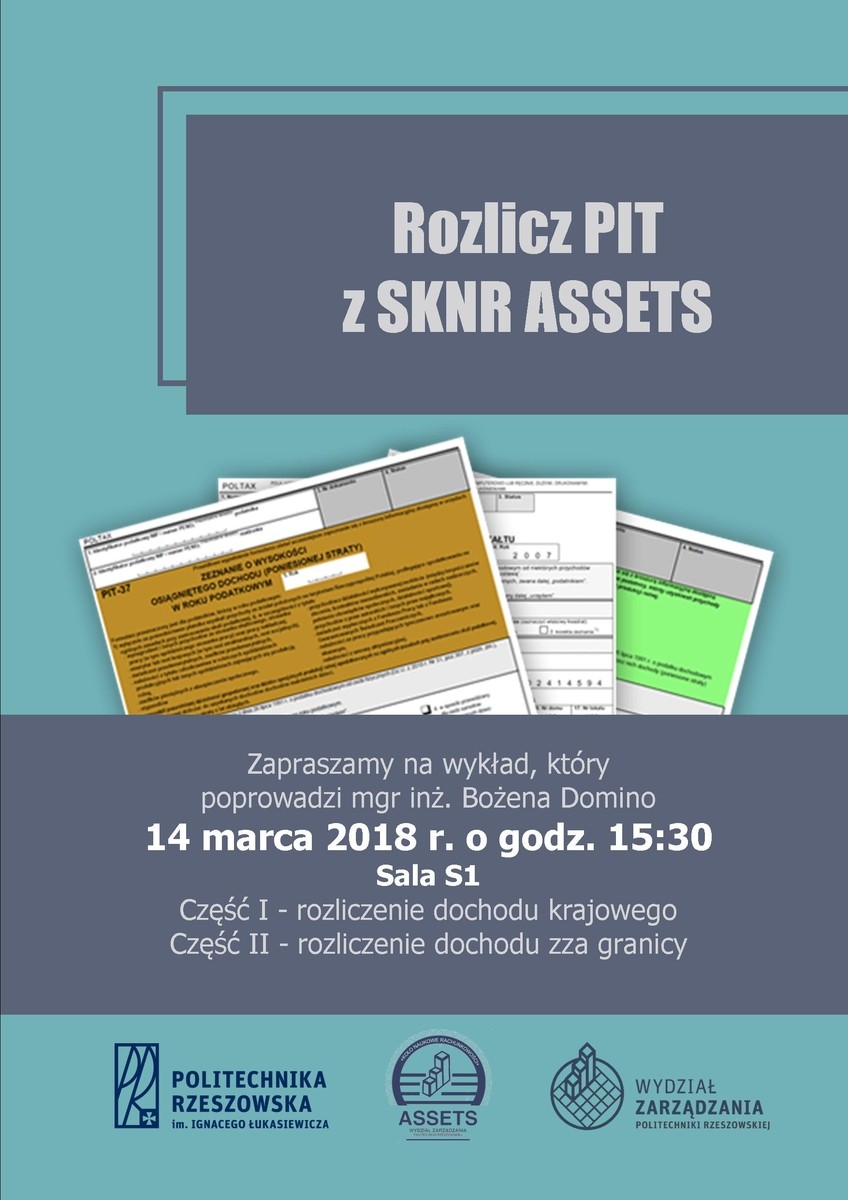 Studenckie Koło Naukowe Rachunkowości ASSETS jak co roku organizuje spotkanie, na którym wszyscy chętni będą mogli dowiedzieć się jak rozliczyć należy podatek dochodowy od osób fizycznych za 2017 rok. Spotkanie prowadzi Pani mgr Bożena Domino wieloletni pracownik organów skarbowych oraz pracownik dydaktyczny Wydziału Zarządzania PRz. Zapraszamy w środę 14 marca 2018 roku o godzinie 15:30 do sali S-1. Wszyscy się zmieszczą. Chyba.