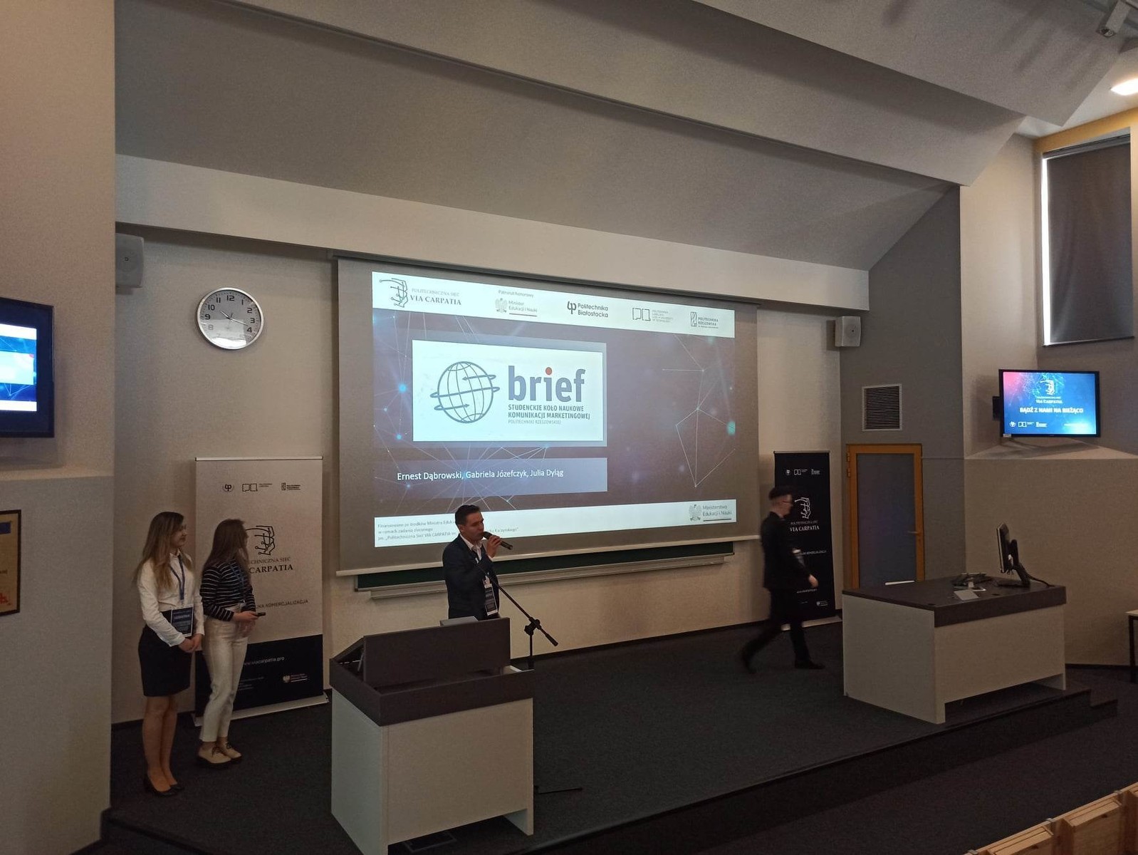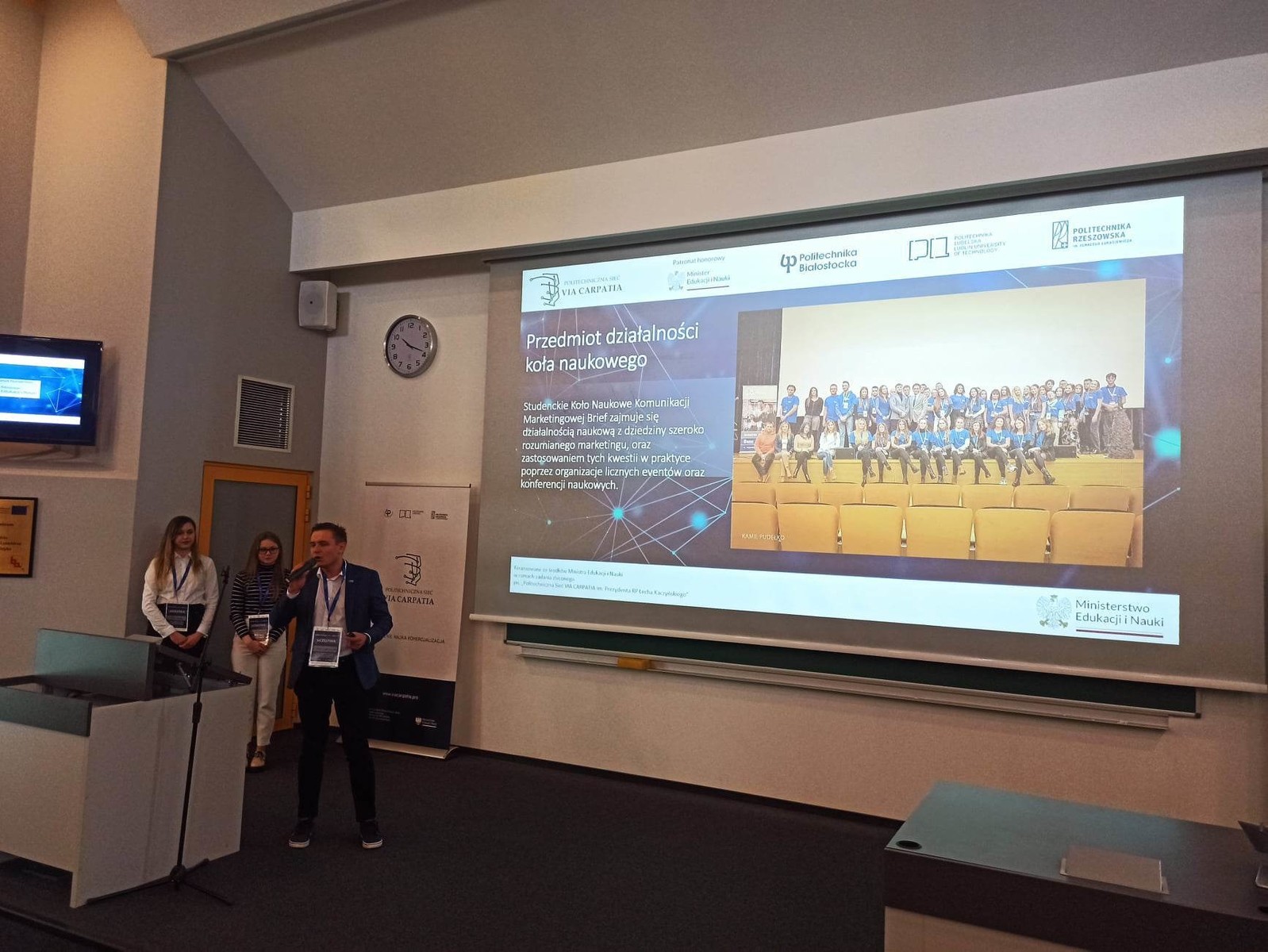 W wydarzeniu brało udział po 5 najaktywniejszych kół z Politechniki Rzeszowskiej, Politechniki Lubelskiej oraz Politechniki Białostockiej. Jednym z uczestników z naszej uczelni, a jednocześnie jedynym reprezentantem Wydziału Zarządzania było Studenckie Koło Naukowe Komunikacji Marketingowej Brief. Członkowie koła w następującym składzie - Ernest Dąbrowski, Gabriela Józefczyk oraz Julia Dyląg przedstawili prezentację na temat działalności własnego koła, oraz referat pt. „Social media jako narzędzie promocji instytucji branży bankowej”. Ponadto w komitecie naukowym konferencji obecne były opiekunki koła - dr Hanna Hall oraz mgr Ewelina Nycz.