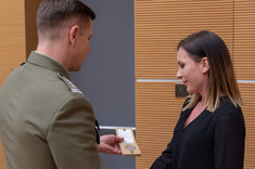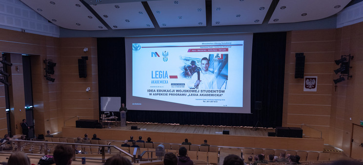 W trakcie spotkania została wyróżniona studentka Wydziału Zarządzania III roku studiów stacjonarnych I stopnia (kierunek bezpieczeństwo wewnętrzne) Kamila Rysz. Otrzymała ona okolicznościową monetę „Służymy Niepodległej” i zestaw gadżetów. Pani Kamila jest na finiszu rekrutacji do zawodowej służby wojskowej. Zachęcała wszystkich obecnych na sali studentów, by związali swe losy z wojskiem. Ona sama na początku nie wierzyła, że służba to fantastyczny sposób na życie, a jednak... Mundur zmienia człowieka, a szkolenia oraz poligony kształtują ciało i ducha.