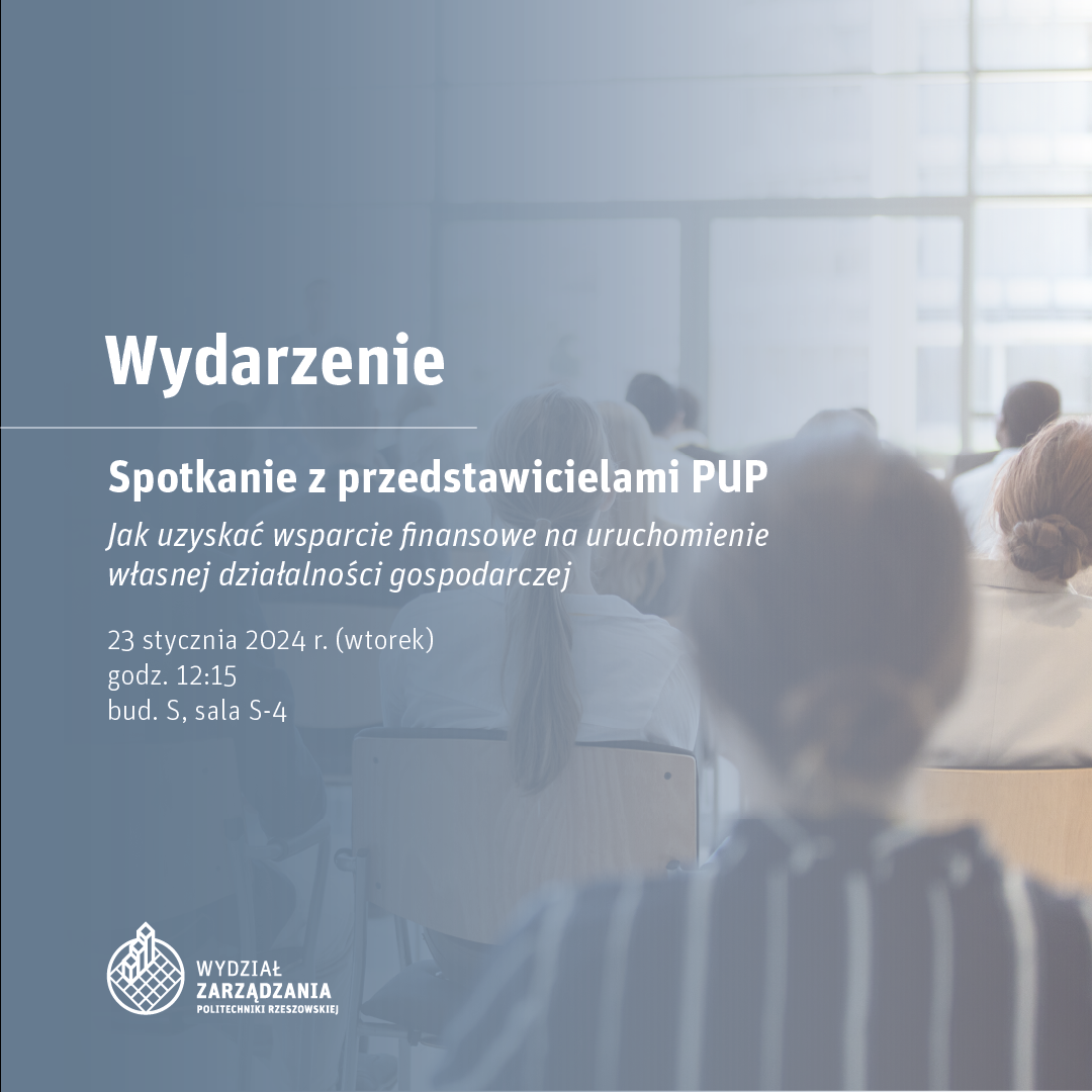 Serdecznie zapraszamy studentów ostatniego roku studiów (pierwszego lub drugiego stopnia) na wyjątkowe spotkanie z Iwoną Pruchnicką i Anną Wajdą, przedstawicielkami Powiatowego Urzędu Pracy w Rzeszowie. Wydarzenie to będzie miało na celu przedstawienie możliwości uzyskania wsparcia finansowego na uruchomienie własnej działalności gospodarczej.
