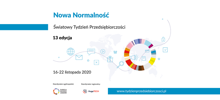 W dniach 16-22 listopada trwać będzie 13. edycja Światowego Tygodnia Przedsiębiorczości - międzynarodowego projektu promującego świadomy rozwój, aktywną postawę wobec życia i podejmowanie biznesowych inicjatyw. Światowy Tydzień Przedsiębiorczości organizowany jest od 2008 roku. Obecna edycja będzie obchodzona w 170 państwach. Każdego roku, w listopadzie, organizacje, instytucje i firmy, którym zależy na rozwijaniu przedsiębiorczości, organizują bezpłatne szkolenia, warsztaty, debaty i kampanie promocyjne z zakresu zakładania i rozwijania własnej działalności gospodarczej, budowania sieci kontaktów, rozwijania start-upów, powrotu na rynek pracy, negocjowania z pracodawcą, budowania własnej marki i wielu innych. W tym roku hasłem przewodnim ŚTP jest NOWA NORMALNOŚĆ. Szczegóły: https://tydzienprzedsiebiorczosci.pl/.