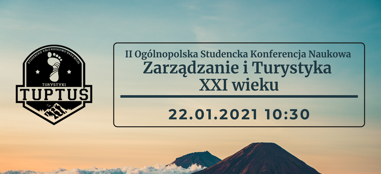 Studenckie Koło Naukowo-Badawcze Turystyki "Tuptuś" zaprasza na II Ogólnopolską Studencką Konferencję Naukową „Zarządzanie i Turystyka XXI wieku”. Odbędzie się ona online za pośrednictwem MS Teams w dniu 22 stycznia 2021 r. Początek o godzinie 10.30 Wydarzenie skierowane jest do studentów uczelni wyższych w całej Polsce, którzy zainteresowani są tematyką konferencji.