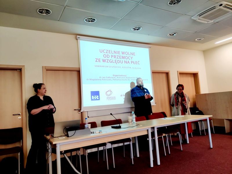 W dniu 25 marca 2024 r. pracownicy Politechniki Rzeszowskiej, w tym również Wydziału Zarządzania, uczestniczyli w seminarium eksperckim "Uczelnie wolne od przemocy ze względu na płeć", które zostało zorganizowane przez Akademicką Sieć Bezpieczeństwa i Równości oraz Uniwersytet Rzeszowski. Spotkanie poprowadziły dr hab. Janina Czapska, prof. UJ oraz mgr Katarzyna Struzińska z Uniwersytetu Jagiellońskiego w Krakowie, które zaprezentowały wyniki badań zrealizowanych w ramach projektu UniSAFE.