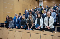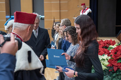 Następnie chór akademicki PRz odśpiewał „Gaude Mater Polonia”, a później prorektor ds. kształcenia dr hab. inż. Grzegorz Masłowski, prof. PRz poinformował zebranych, że Fundacja Rozwoju Politechniki Rzeszowskiej po raz piętnasty przyznała najlepszym absolwentom z poszczególnych wydziałów medale „PRIMUS INTER PARES”. Medale te przyznawane są za wybitne osiągnięcia w nauce i za wszechstronną działalność na wielu płaszczyznach studenckiego życia. Z Wydziału Zarządzania medal otrzymała Monika Koszarska.