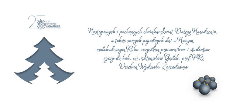 Życzymy więc: Niech magia świąt panująca przy Wigilijnym stole przyniesie Państwu spokój i radość. Niech każda chwila Bożego Narodzenia napełnia wszystkie serca miłością i życzliwością, a Nowy Rok niech przyniesie spełnienie planów i marzeń. Życzymy wszystkiego co najlepsze wszystkim wykładowcom, studentom, pracownikom administracji Wydziału Zrządzania.