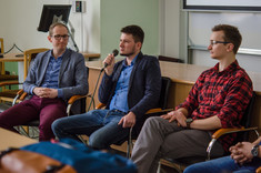Gwar, mnóstwo gości i oczywiście studentów z wykładowcami, wielu pytających, oczekujących odpowiedzi na różnorodne pytania związane ze studiami, realizacją pasji, wyjazdami zagranicznymi, zasadami udziału w pracach SKN i nie tylko. Dwa arcyciekawe wykłady z ludźmi, którzy nie bywają zbyt często na Wydziale, to wszystko toczyło się prawie równolegle dając posmak rozmachu, twórczego chaosu, naukowego zamieszania.