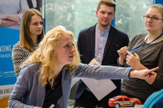 Na pierwszym piętrze budynku S trwały Targi Erasmus, stanowiące doskonałą okazję do porozmawiania ze studentami Wydziału Zarządzania, którzy byli w ostatnim semestrze na studiach zagranicznych w ramach Erasmus+ w takich państwach jak: Hiszpania, Portugalia, Islandia, Niemcy i Turcja. Na targach byli również przedstawiciele Działu Współpracy Międzynarodowej, którzy służyli wyjaśnieniami m.in. w zakresie aplikacji na studia zagraniczne w ramach Programu Erasmus+, a także przedstawiciele Studium Języków obcych, którzy przybliżali szczegóły egzaminu kwalifikacyjnego na wyjazdy zagraniczne w ramach Erasmus+.