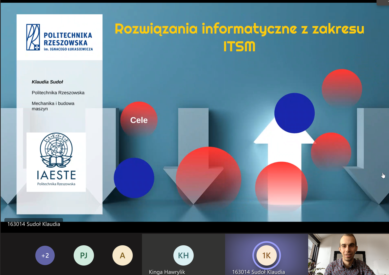 W dniu 15 stycznia 2021 r., z inicjatywy organizacji studenckiej IAESTE Politechnika Rzeszowska, działającej przy Zakładzie Finansów, Bankowości i Rachunkowości (Wydział Zarządzania) odbyła się I Ogólnopolska Konferencja Naukowa „Wyzwania zarządzania w XXI wieku”. Na wstępie mgr Maria Kubacka, opiekun IAESTE Politechnika Rzeszowska, przywitała wszystkich gości i uczestników naukowego spotkania oraz przedstawiła ogólny porządek konferencji. Ze względu na obecną sytuację epidemiczną Konferencja odbyła się w formie zdalnej, a wystąpieniom i dyskusji przysłuchiwał się także dr hab. inż. Grzegorz Lew, prof. PRz, kierownik Zakładu Finansów, Bankowości i Rachunkowości Wydziału Zarządzania.