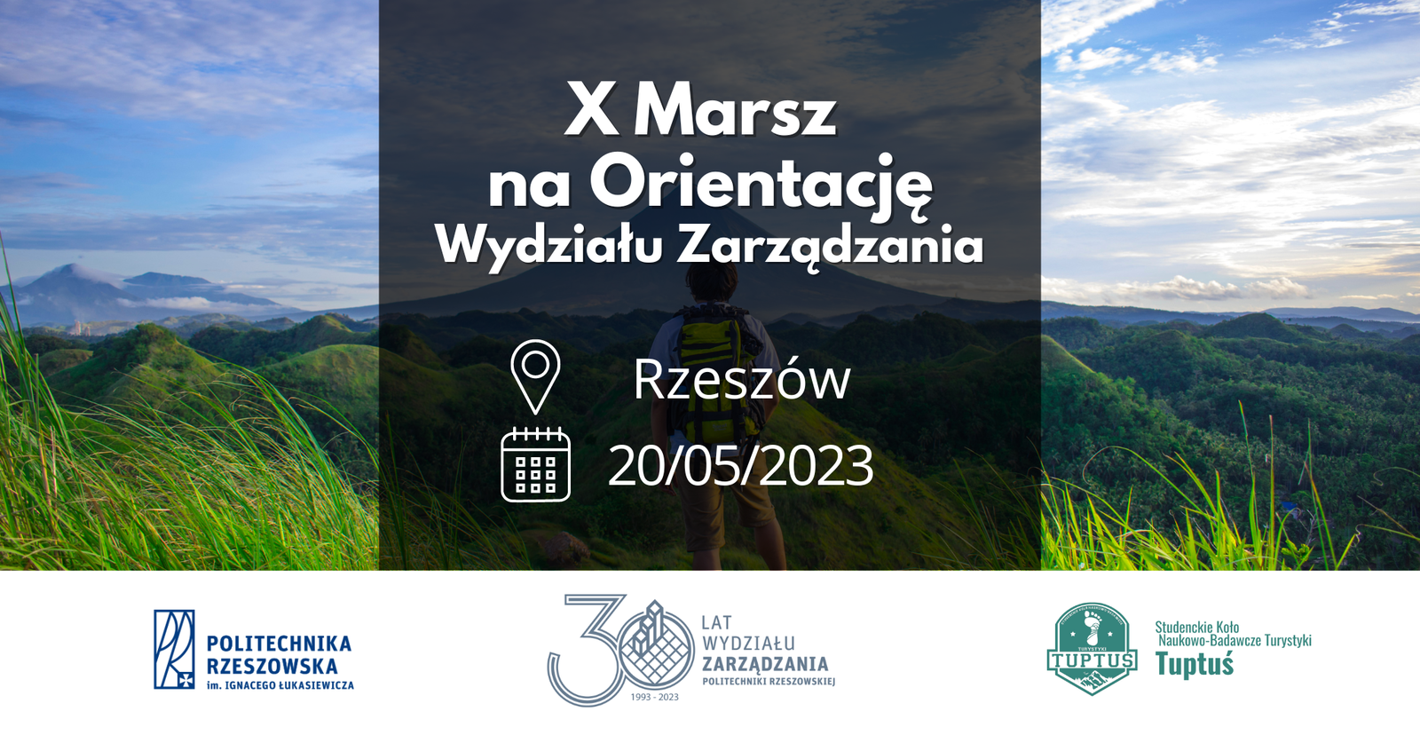 Już po raz dziesiąty Studenckie Koło Naukowo-Badawcze Turystyki "Tuptuś", aktywnie uczestniczące w życiu Wydziału Zarządzania, zaprasza wszystkich studentów do udziału w X Marszu na Orientację. Tegoroczna edycja będzie kontynuacją rywalizacji między studentami, które wzbogacą 30-lecie istnienia Wydziału Zarządzania Politechniki Rzeszowskiej im. Ignacego Łukasiewicza.