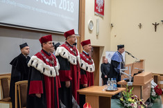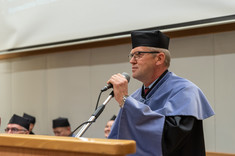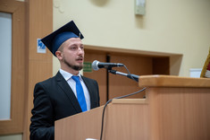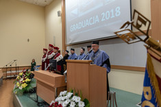 Przedstawiciel promotorów dr hab. Marcin Jurgilewicz, prof. PRz słusznie podkreślał, że funkcja opiekuna seminarzystów jest wyjątkowa, gdyż między naukowcem a studentem tworzy się fantastyczna i niepowtarzalna więź. Apelował też do absolwentów, by ci nie zapominali o zdobytych informacjach i by nie zapominali o uczelni.