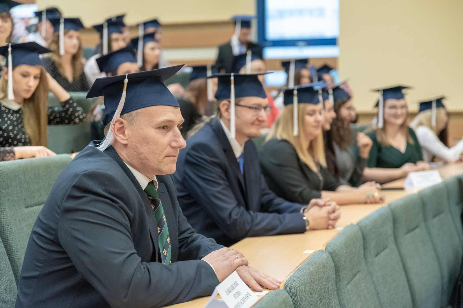 O godz. 9.30, gdy wszyscy znaleźli się już w auli zapewne przynajmniej część z zebranych ogarnęły: nostalgia, żal i smutek, że studia już za nimi, że skończył się czas kolokwiów, egzaminów, ale zarazem piękny czas wspólnych spotkań z koleżankami i kolegami z grupy i roku.