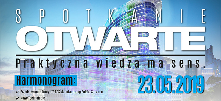 W dniu 23 maja 2019 r. firma UTC CCS Manufacturing Polska Sp. z o.o. zaprasza wszystkich studentów na spotkanie otwarte pt. "Praktyczna wiedza ma sens", które rozpocznie się o godz. 14.00 w budynku V, sala V6. W programie oprócz zaprezentowania profilu i działalności firmy mowa będzie m.in. o nowych technologiach: proces spawania laserowego; kontrola optyczna 3D, In-circuit and Function Test. Przewidziano także informację o programie płatnych praktyk wakacyjnych itp.