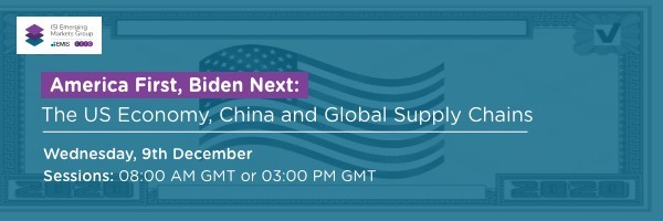 Zespół EMIS zaprasza na webinar: America First, Biden Next: The US Economy, China and Global Supply Chains, który odbędzie się już dzisiaj (środa 9 grudnia 2020 r.) – początek godz. 16:00. Czas trwania 60 minut. Język: angielski.