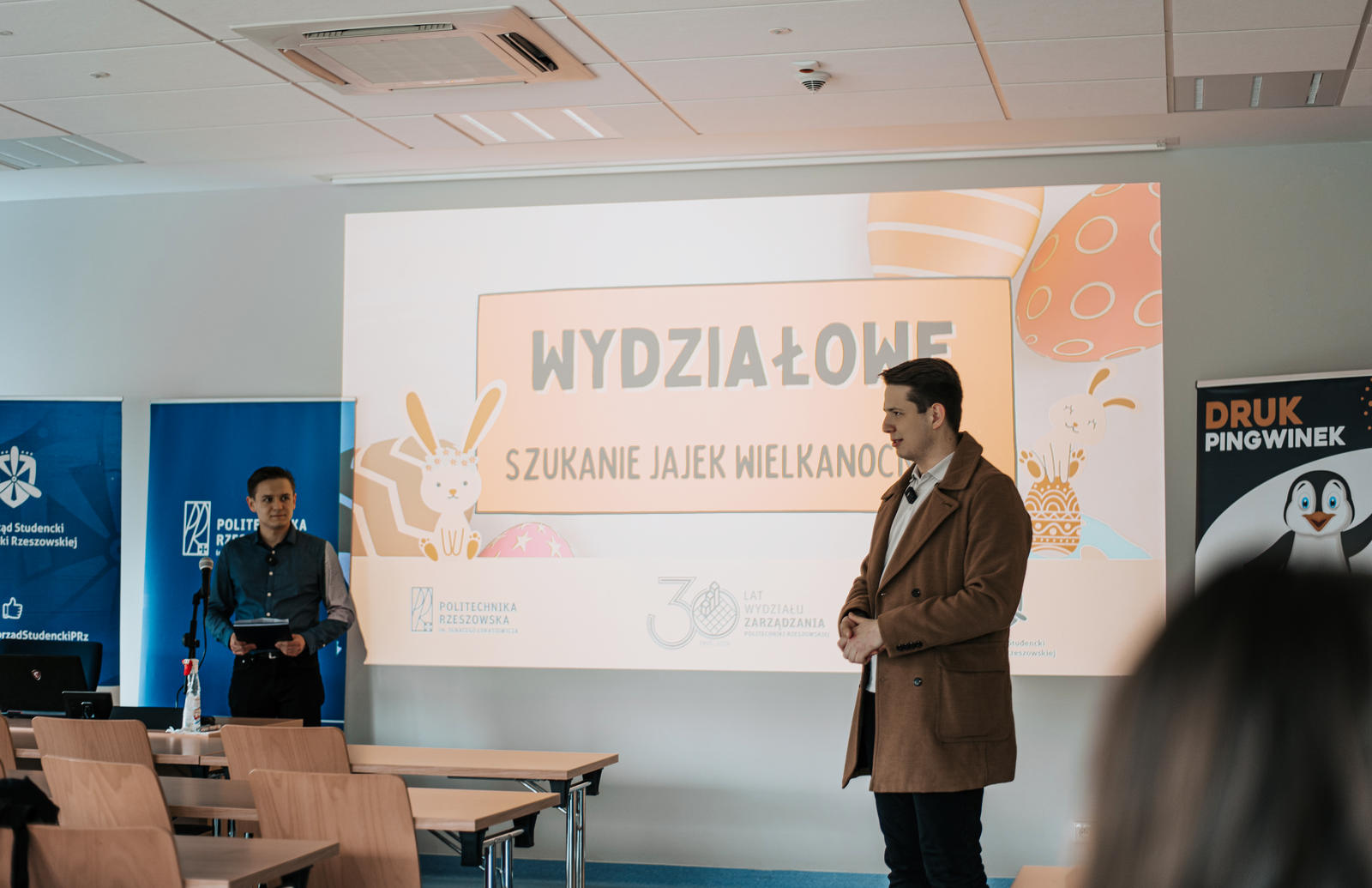 W przedświąteczny czwartek (4 kwietnia 2023 r.) odbyła się I edycja "Wydziałowego Szukania Jajek Wielkanocnych", która została zorganizowana przez działaczy Samorządu Studenckiego Politechniki Rzeszowskiej z Wydziału Zarządzania.
