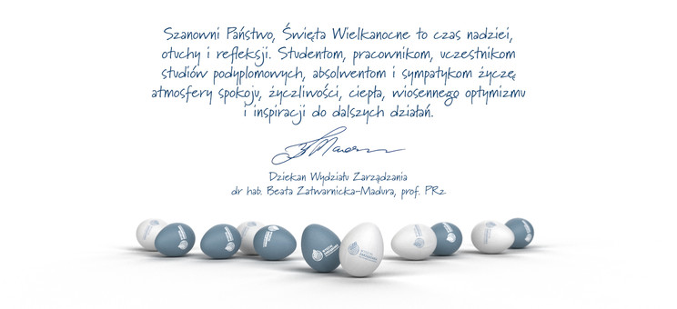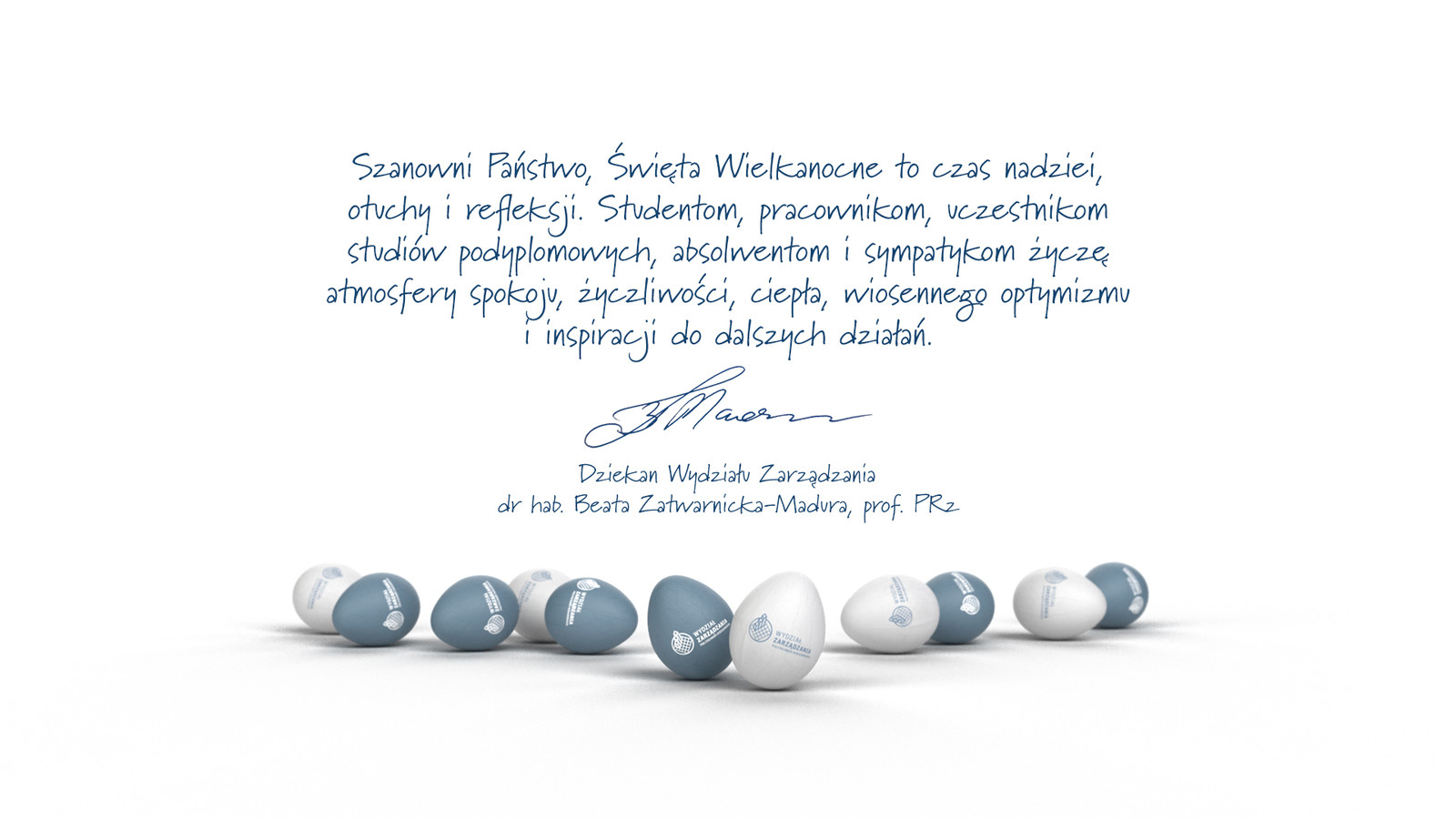 Szanowni Państwo, Święta Wielkanocne to czas nadziei, otuchy i refleksji. Studentom, pracownikom, uczestnikom studiów podyplomowych, absolwentom i sympatykom życzę atmosfery spokoju, życzliwości, ciepła, wiosennego optymizmu i inspiracji do dalszych działań.