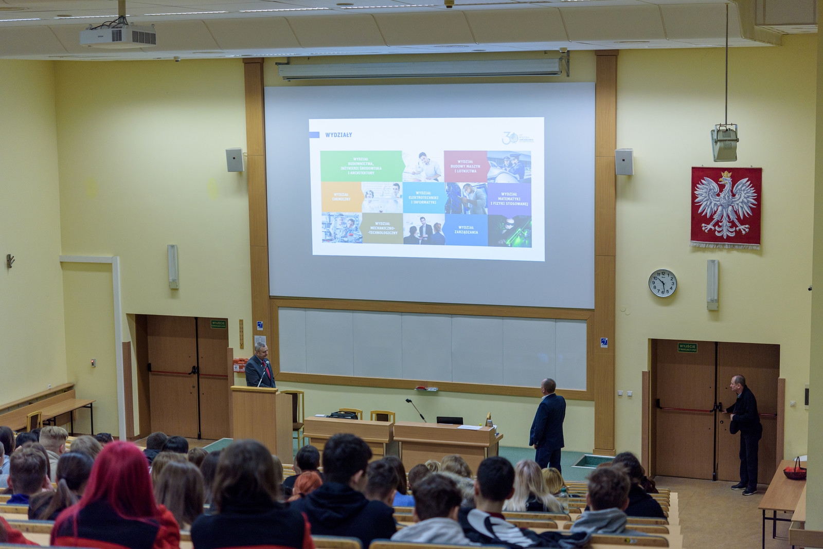 uczniowie szkół ponadpodstawowych mogli dowiedzieć się, jak podczas nauki na Politechnice Rzeszowskiej można realizować swoje pasje oraz rozwijać nowe talenty. Rozmawiano także na temat programu PROJEKTOR.